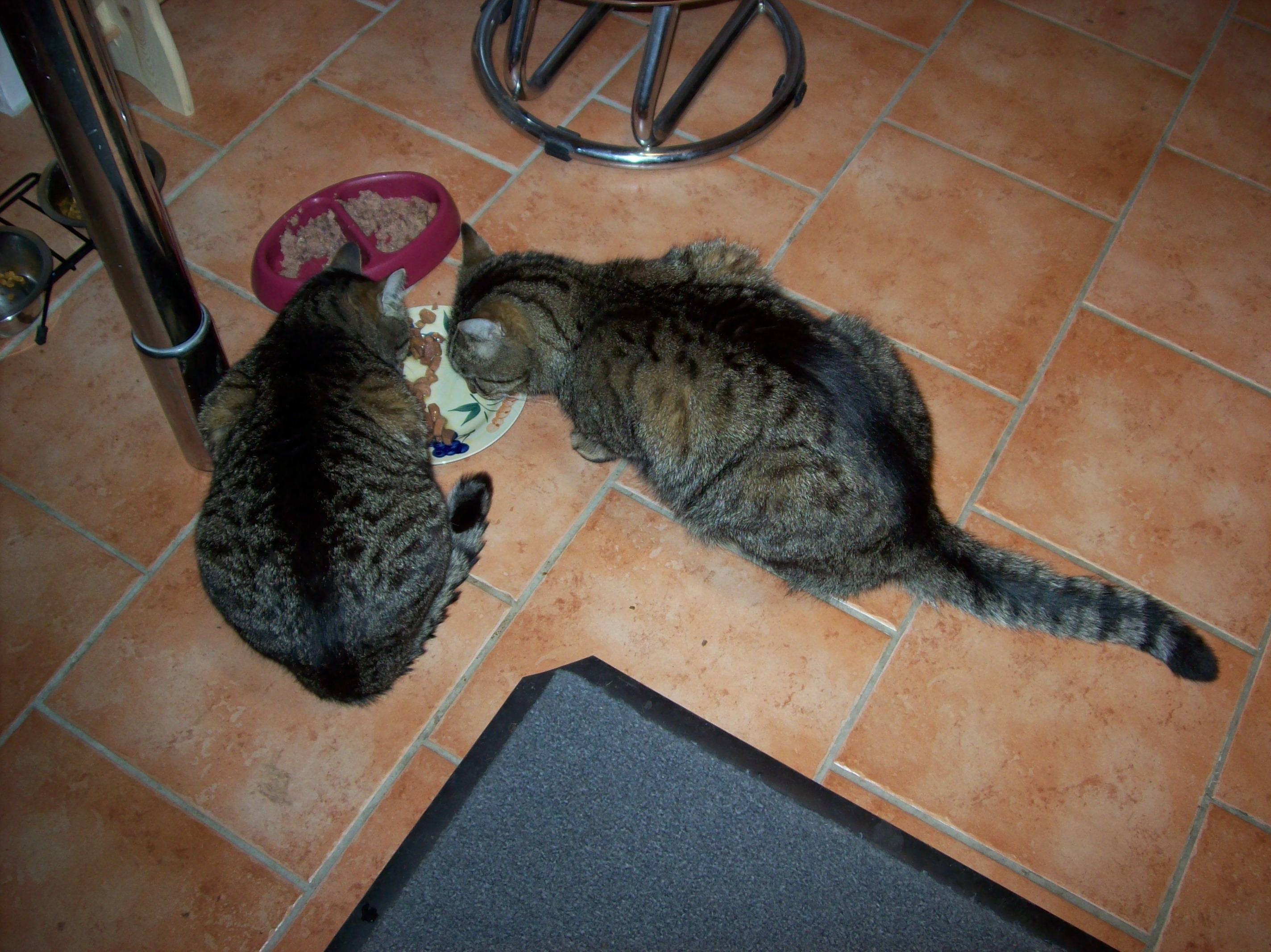Und da sind natürlich noch die beiden Katzen. Ich komme gut mit Ihnen aus.